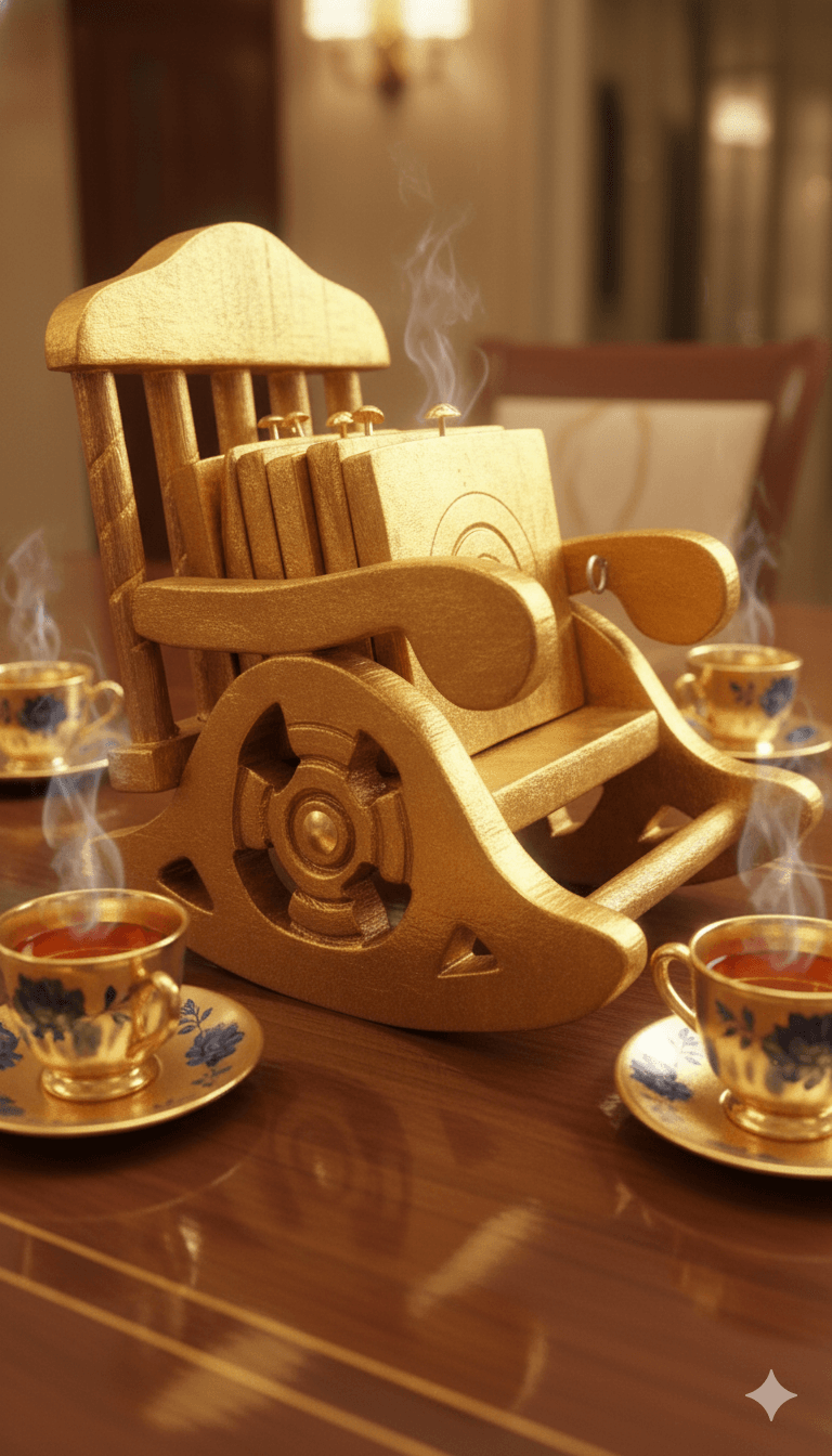 Bring a touch of royal elegance to your table with the Zen Impex Golden Wooden Antique Chair Shape Coaster Set. Handcrafted from premium quality wood and finished with a luxurious golden antique polish, this unique miniature chair design doubles as both a coaster holder and a decorative showpiece. Perfect for protecting your furniture from drink stains while adding charm to your kitchen, dining table, office desk, or restaurant setup.